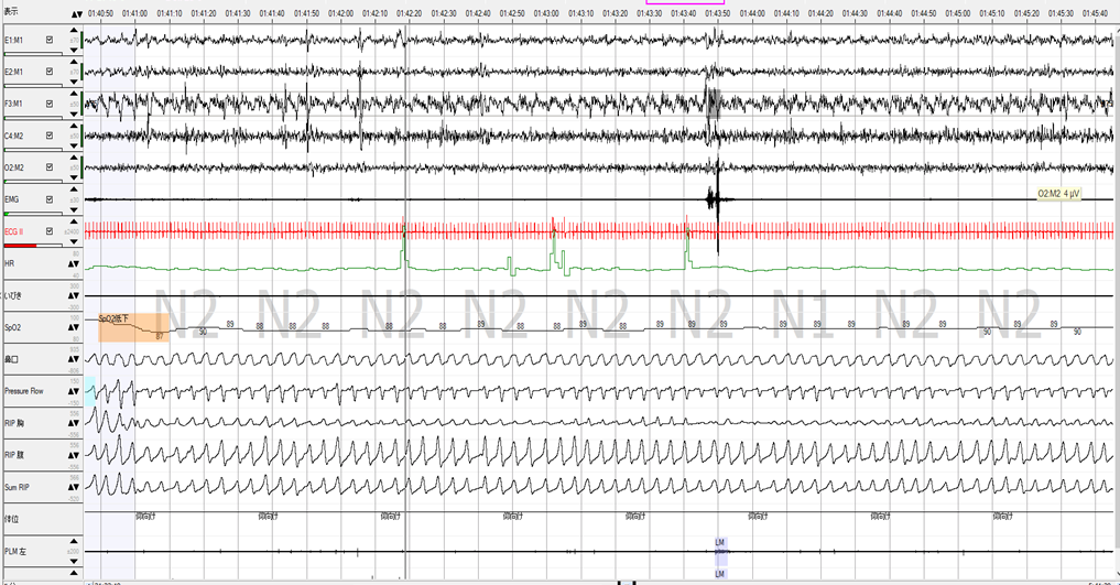 ノンレム睡眠側臥位の安定呼吸時の持続的なSpO2低下